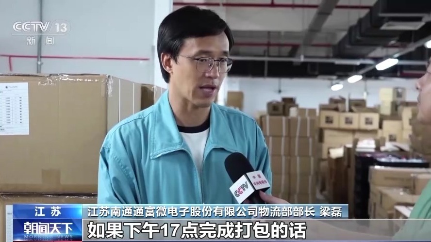江蘇南通通富微電子股份有限公司物流部部長 梁磊:我們當(dāng)天的出貨,如果17點(diǎn)完成打包的話,當(dāng)天晚上12點(diǎn)前,基本就能到達(dá)深圳。客戶的一些特急件,我們甚至凌晨就能派送到位。