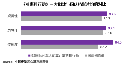 《莫斯科行動》根據20世紀90年代跨境追捕搶劫案犯案件改編,在真實社會事件基礎之上有機融入商業化要素,三大指數得分均超83分。