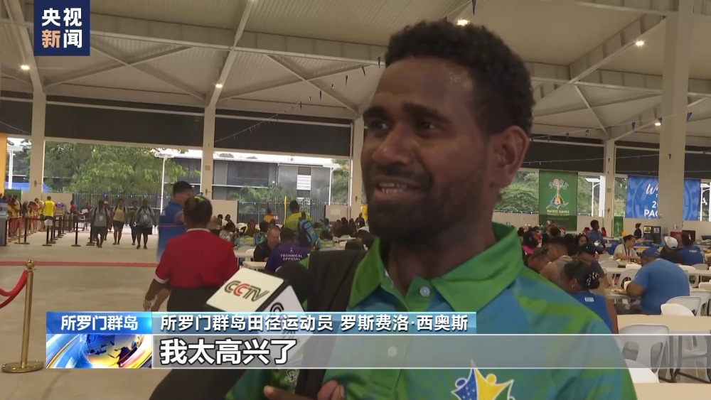 所羅門群島田徑運動員 羅斯費洛·西奧斯:我不知道應該怎么說,我太高興了,因為以前我們都是在草地上訓練的,而現在我能在跑道上跑步了,所以我真誠地感謝中國政府,這對我來說也是田徑事業和人生的新篇章。