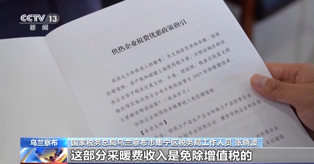 國家稅務總局烏蘭察布市集寧區稅務局工作人員 張曉波:向居民供熱取得的這部分采暖費收入是免除增值稅的,為了支持企業發展,也免除“房土”兩稅。