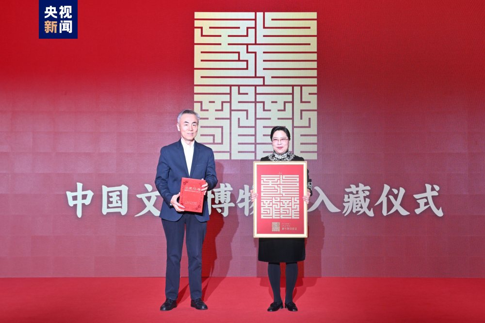 發布儀式上,2024年總臺春晚主標識被中國文字博物館正式收錄入館。2024年總臺春晚主標識的“龘”字,整體設計以中國傳統篆刻藝術中極具特色的“國朝官印”字體——九疊篆為靈感來源,莊重平衡、中正勻稱,彰顯出大氣雄健的文化氣象。總臺春晚以“龘”字為題眼,用“龘龘”之姿生動描摹十四億中華兒女奮發有為、昂揚向上的精神風貌。