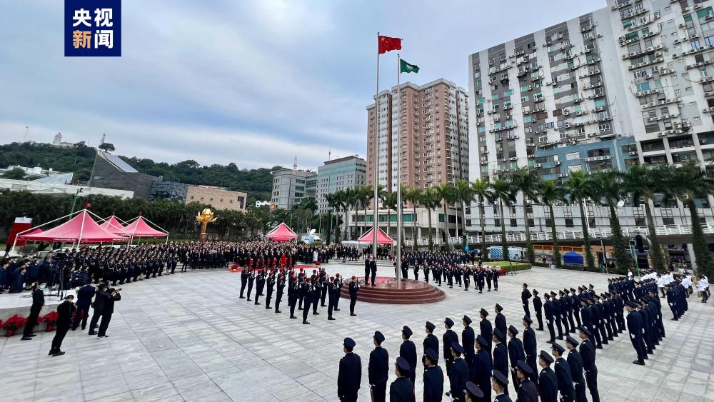 澳門特區(qū)政府20日在金蓮花廣場舉行升旗儀式,慶祝澳門回歸祖國24周年。