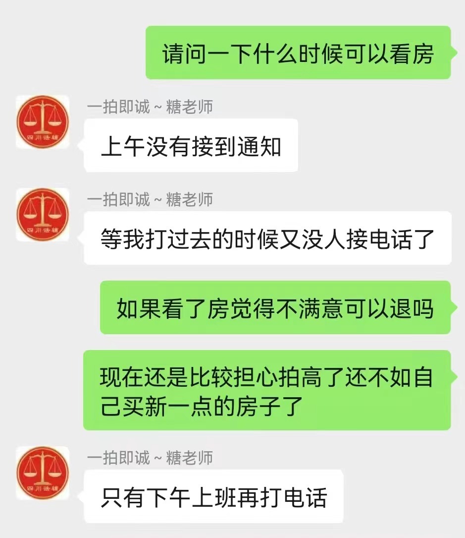 吳先生說:“他就請我去成都看一下(房子),不是要拍賣的那間房,是跟他同戶型同小區的其他房,他們就偽裝是客戶,打電話給附近的鏈家,請鏈家的業務找類似的房子,就帶我去看。看完之后回來就告訴我,反正只要簽給他們公司,底價拿到(房子)。等你交完費都弄好了,他就叫你去淘寶上面報名,在阿里(司法)拍賣拍,這不是已經擺明告訴我已經被騙了。”
