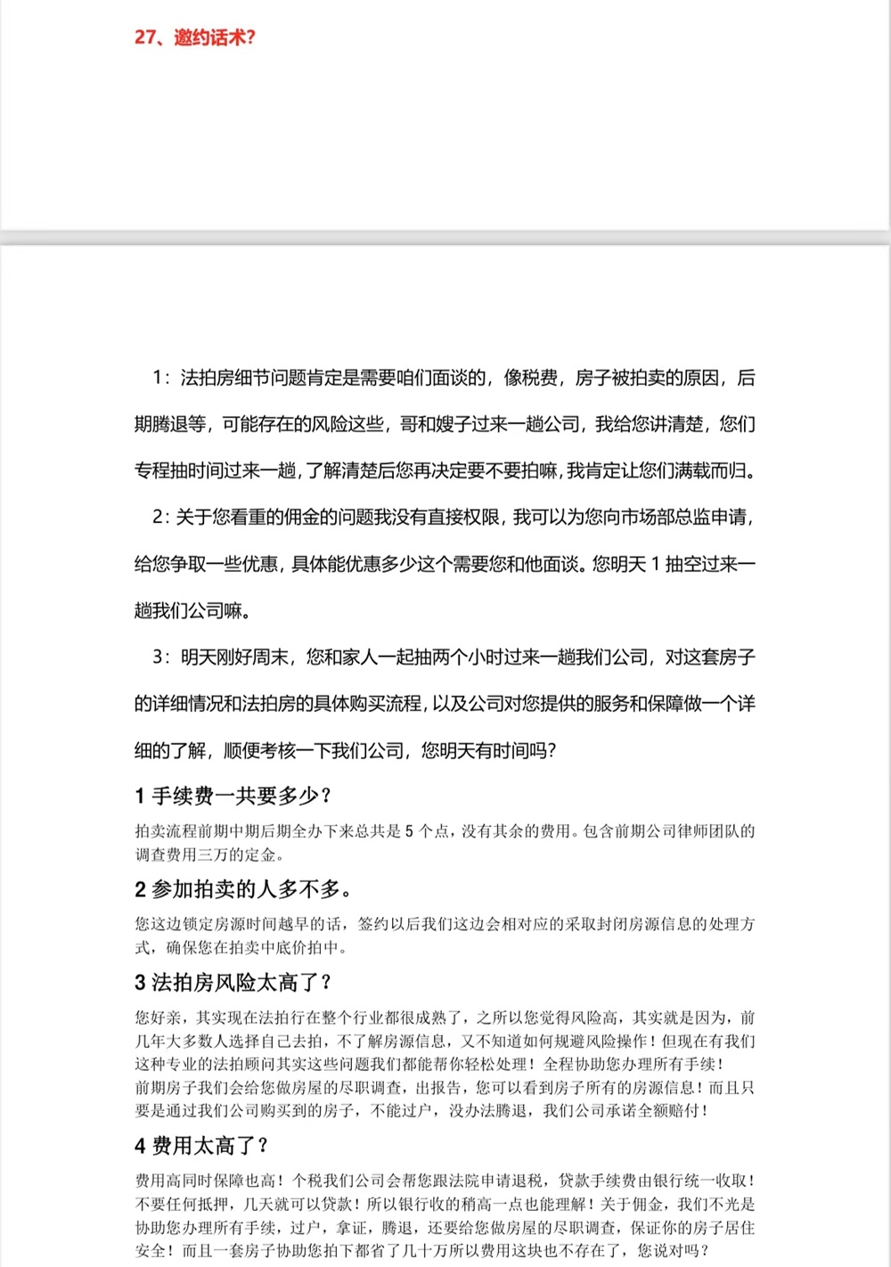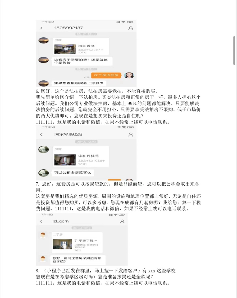 吳先生說,他所在的維權群里有30多位消費者,盡管大家是與不同中介簽訂的合同,但梳理發現,這些“法拍房中介”前期向客戶推銷時有固定的話術。“第一,就是說現在很多房子在拍賣;依據我們的經驗,在這一帶,這種類型的房子二十幾萬就能拿下來了;他就告訴你,基本上這個價格不會有什么變化的,你只要跟我們簽約,我們就能幫你服務、幫你拿到。”