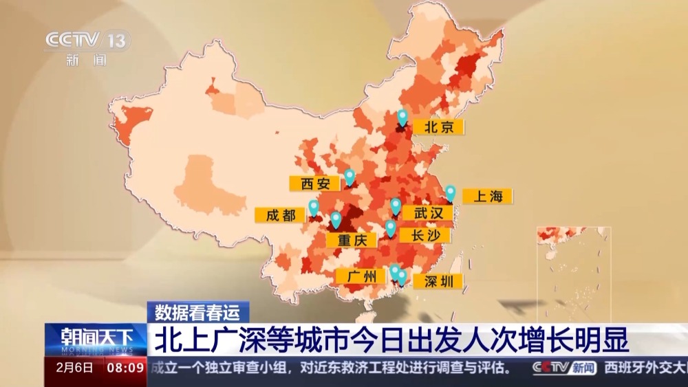 從出發城市看,北京、上海、廣州、深圳、成都這幾個城市的出發人次今天增長明顯。而成都、武漢、西安、重慶、長沙這五個城市的出發人次連續多日保持增長。