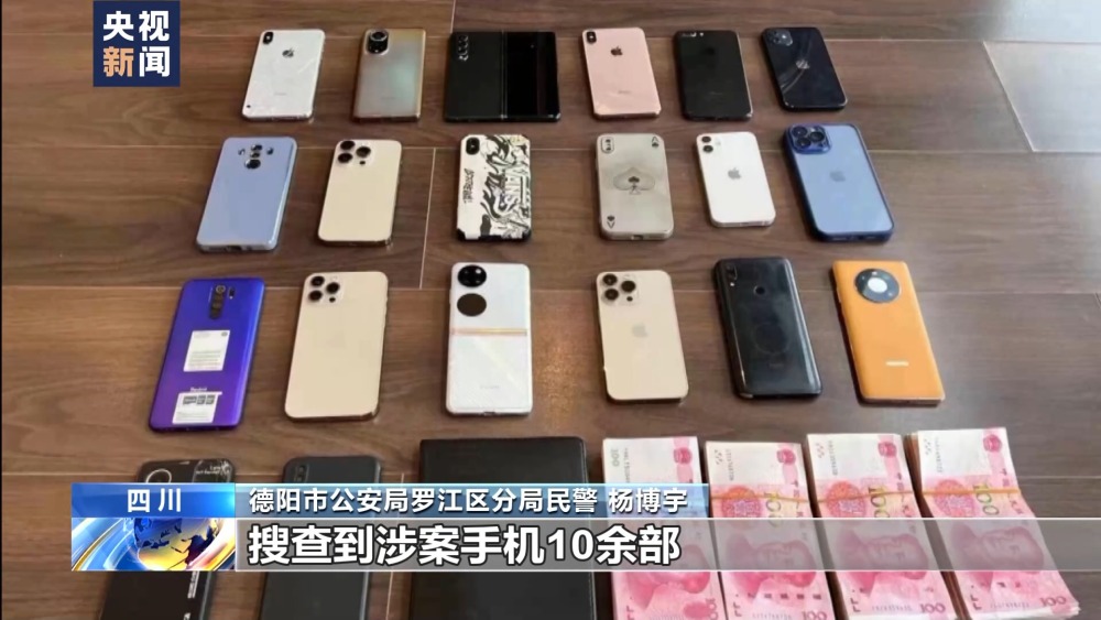 德陽市公安局羅江區分局民警 楊博宇:當時我們在趙某的出租屋內,搜查到涉案手機10余部,涉案銀行卡上百張,涉案現金50余萬元。