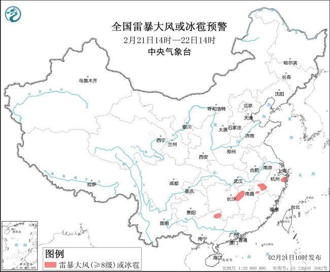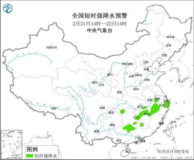 中央氣象臺2月21日10時繼續發布強對流天氣藍色預警:預計2月21日14時至22日14時,江西西部和東北部、浙江西部、廣西東北部等地的部分地區將有8—10級雷暴大風或冰雹天氣;安徽南部、湖北東南部、湖南中南部、江西中北部和南部、浙江西部和東北部、廣西東北部、廣東西北部等地的部分地區將有短時強降水天氣,最大小時雨量20—30毫米,局地可達40毫米以上。