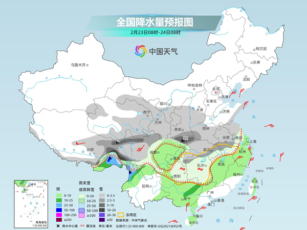 今天(2月23日),我國中東部等地大范圍雨雪持續(xù),降水強度繼續(xù)減弱,不過陜西南部、湖北東部和南部等地部分地區(qū)仍有大雪,局地暴雪,湖南、貴州等地有凍雨。明后天,北方大部降雪停歇,南方仍有雨雪天氣。預計南方多陰雨的天氣格局將延續(xù)至月底,大部地區(qū)氣溫也持續(xù)低迷,公眾春運出行需注意防范。
