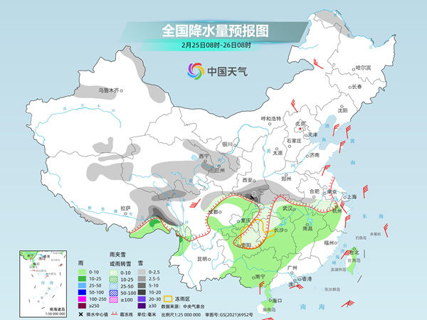昨天,我國雨雪范圍仍然較大,雨雪強度有所減弱,監(jiān)測顯示,湖北、湖南、安徽和江蘇等地出現(xiàn)雨雪冰凍天氣,青海東部、安徽中部、江蘇西部、湖北東部等地部分地區(qū)出現(xiàn)中到大雪,湖北荊州、咸寧、武漢、黃石和安徽安慶等地暴雪。湖北東南部、安徽南部、江蘇西南部、江西西北部、湖南東北部及西藏東南部、云南西北部等地部分地區(qū)出現(xiàn)雨夾雪5~15毫米,江西南昌局地26毫米。貴州中東部、湖南中南部、湖北東部、安徽中西部等地出現(xiàn)凍雨。江西中北部、浙江南部、福建西北部等地出現(xiàn)中到大雨,江西鷹潭和上饒,浙江麗水、衢州和臺州,福建南平等局地暴雨,江西上饒局地100~149毫米。