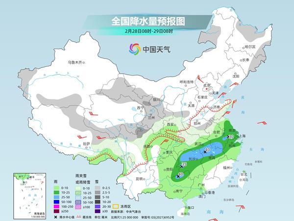 后天,內蒙古西部和東北部、東北地區東部、新疆南疆、西藏東部、西北地區中東部、黃淮東部、安徽北部、江漢西部、川西高原北部等地的部分地區有小到中雪或雨夾雪。西藏東南部、西南地區東部、江漢、江淮、江南大部、華南西部等地的部分地區有小到中雨,其中,安徽中南部、江蘇南部、湖北東部、湖南中西部和北部、江西北部、廣西東北部等地的部分地區有大雨(25~40毫米)。