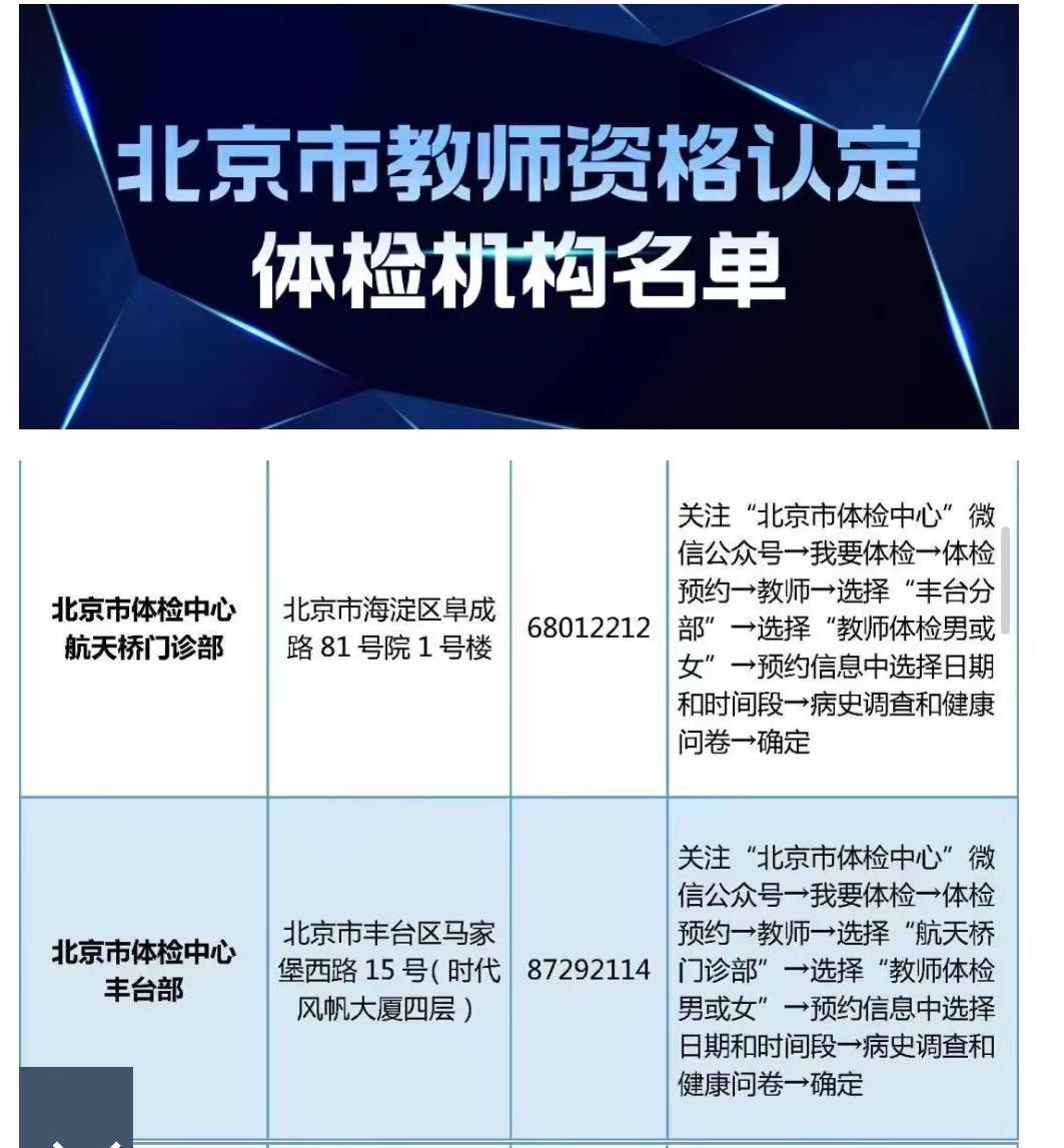 尚未進行體檢的請自行與體檢機構聯系完成體檢。北京市體檢中心將于3月中下旬在豐臺部、航天橋門診部和馬甸部舉行多場教師資格認定體檢專場。具體時間安排可聯系相應機構咨詢。
