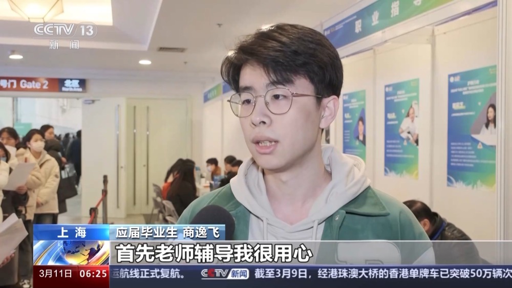 應屆畢業生 商逸飛:今天職業指導,首先老師輔導我很用心,然后我也能夠了解很多關于我這個專業的就業方向的問題,我覺得就業指導對于我們這些應屆畢業生來說很重要。