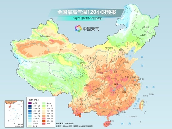 今天(3月25日),中東部降水范圍向南收縮,強度也將有所減弱,不過安徽、江西、浙江、福建、湖南、廣西等地局地仍有大雨。氣溫方面,今明天降溫重心將轉移至江南、華南等地,北方則快速進入升溫通道,本周將再度掀起一波創新高浪潮,最高氣溫25℃線或將北抬至西北地區一帶。