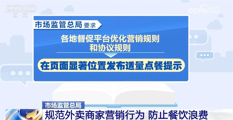 市場監管總局要求各地督促平臺優化營銷規則和協議規則,在頁面顯著位置發布適量點餐提示;鼓勵平臺健全激勵機制,推動商家開發、提供、推廣小份餐品,合理設置餐品起送價格,優化滿減湊單機制,不將主食納入滿減優惠展示范圍,鼓勵使用食安封簽。線上線下、同頻同步開展防止餐飲浪費與食品安全監督檢查,持續開展“隨機查餐廳”行動。對造成明顯浪費、嚴重浪費且拒不改正的,依法嚴厲處罰并公開曝光。