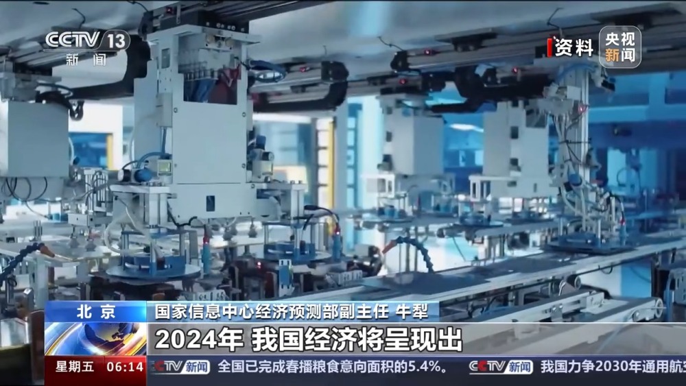 國家信息中心經濟預測部副主任 牛犁:我們專家團隊研判認為,2024年,我國經濟將呈現出“前穩后高、持續向好”的態勢,經濟回升向好的態勢更趨鞏固,各個季度之間的增速波動更趨平緩,供給端和需求端這種結構更趨均衡,就業和物價的水平更趨穩定。