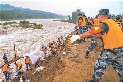 7月19日,空降兵某旅官兵到達受災現場后,迅速向堤壩塌陷處運送沙袋。[詳細] -
