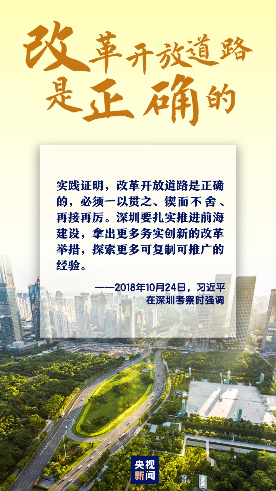 40年來,中國的改革全面深化,中國的開放全面擴大。深圳、海南、浦東等地翻天覆地的變化,成為中國特色社會主義生動實踐的精彩樣本。