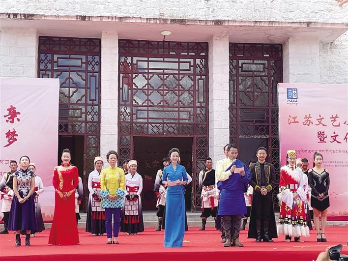 演出過程中,藏族演員們優美的舞姿、充滿激情的表演,豐富地展現了獨特的高原風情;江蘇文藝小分隊的演員們高亢的歌喉、動聽的樂器表演、大氣磅礴的書法作品,鮮明地體現了中華傳統文化的獨特魅力。現場,兩地演員們用精彩紛呈的演出,盡情表達了藏族兒女和全國各族人民一起勝利邁進全面小康社會的喜悅與幸福。