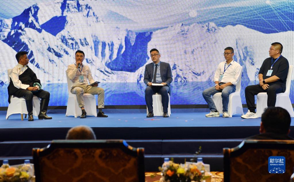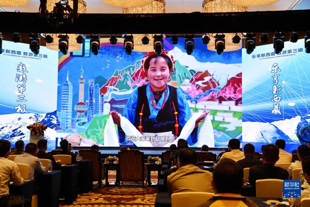 在2022年西藏日喀則旅游推介會暨數字旅游創新發展論壇上,國內業界人士就數字文旅和日喀則旅游數字化發展前景進行主題演講和對話(7月15日攝)。新華社記者 張汝鋒 攝