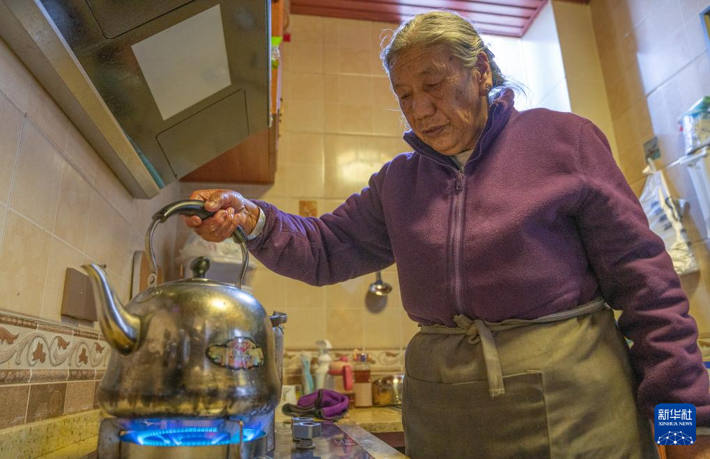 格桑玉珍在家中燒水(4月3日攝)。新華社記者 丁增尼達 攝