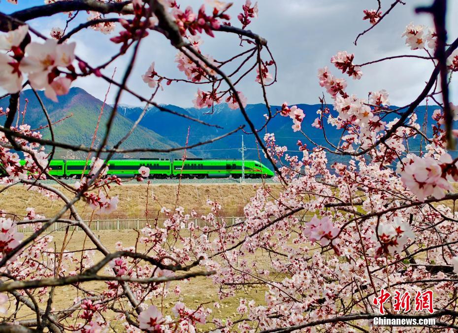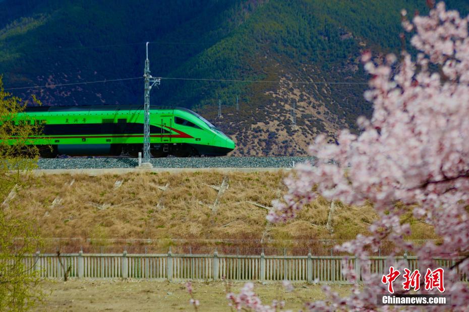 被譽(yù)為新“天路”的拉林鐵路,是中國首條高原電氣化鐵路,于2021年6月25日開通運(yùn)營,結(jié)束了西藏東南地區(qū)不通鐵路的歷史。圖為拉林鐵路沿線桃花盛開,與飛馳而過的動車構(gòu)成別樣風(fēng)景圖。