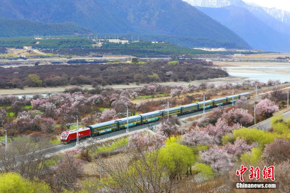 四月伊始,拉林鐵路沿線的桃花迎來了盛開時節(jié),藍(lán)天白云下,一朵朵桃花漲紅了臉頰,與遠(yuǎn)處的雪山交相輝映,吸引了不少游客來感受高原春天的獨(dú)特魅力。當(dāng)一列列火車穿過花海,映入眼簾的皆是滿山遍野的桃花,讓人仿佛置身于秀美的江南之中。圖為拉林鐵路沿線桃花盛開。