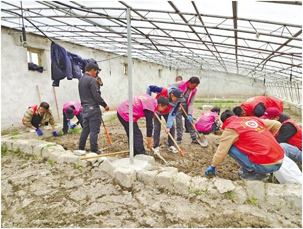 圖為薩爾鄉開展“志愿紅”播種“愛心菜”活動。