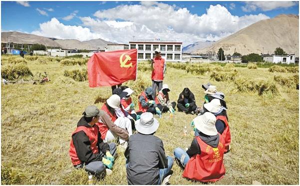 圖為薩爾鄉開展“助農秋收”志愿活動。 圖/文 記者 楊子彥