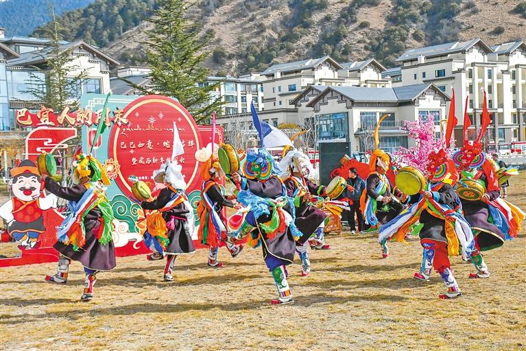 圖為來自巴宜區布久鄉的農牧民演出隊進行非遺“羌姆”表演。記者 劉楓 王珊 攝