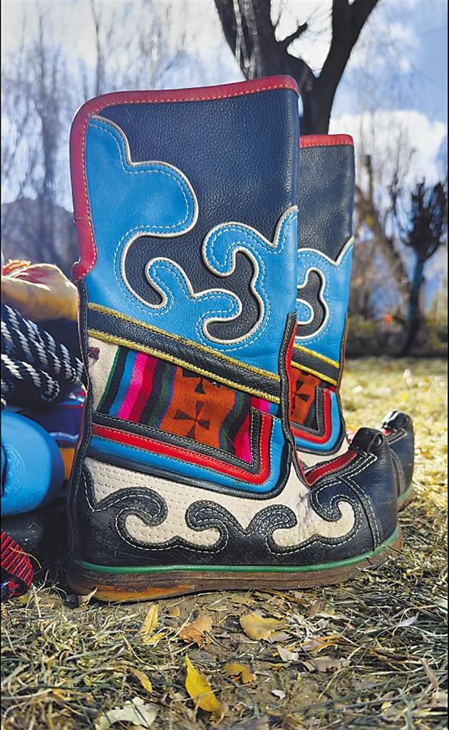堆龍德慶區覺木隆派藏戲演員表演時穿的藏靴。(圖片均由拉薩市文化和旅游局提供)