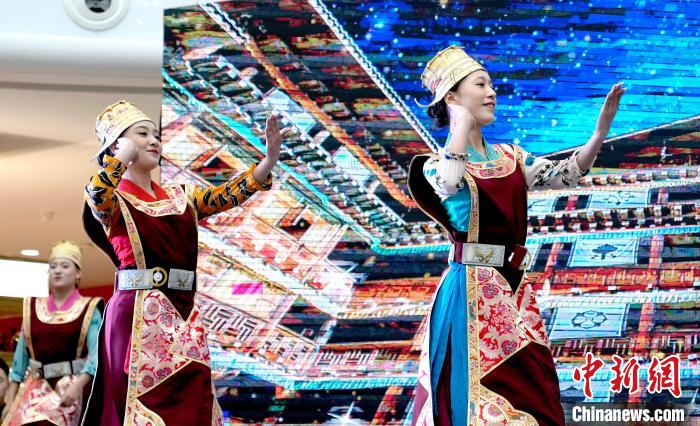 圖為西藏林芝第二十二屆桃花旅游文化節推介會(拉薩站)現場的文藝演出。李林 攝