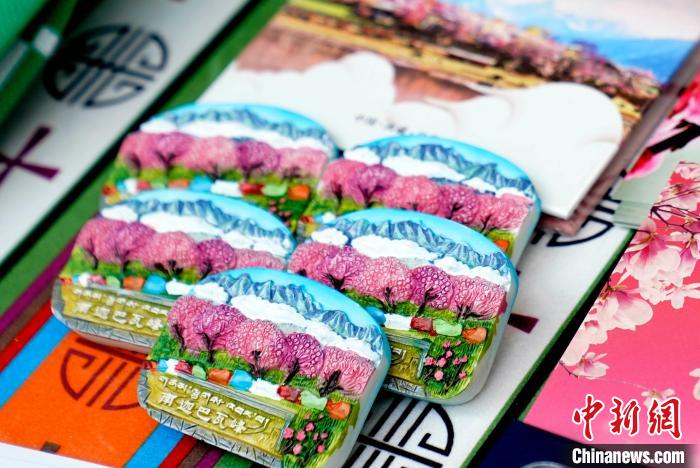 圖為西藏林芝第二十二屆桃花旅游文化節推介會(拉薩站)現場,展出的文創產品。李林 攝