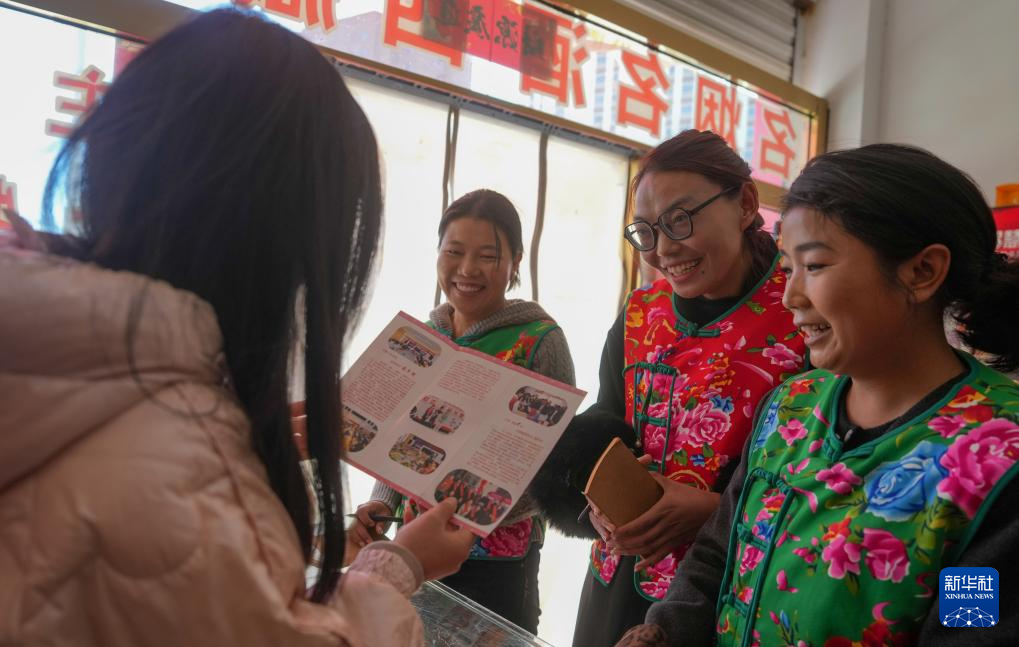 “花大姐”向轄區商戶宣傳議事會各種惠民事項(3月6日攝)。新華社記者 晉美多吉 攝