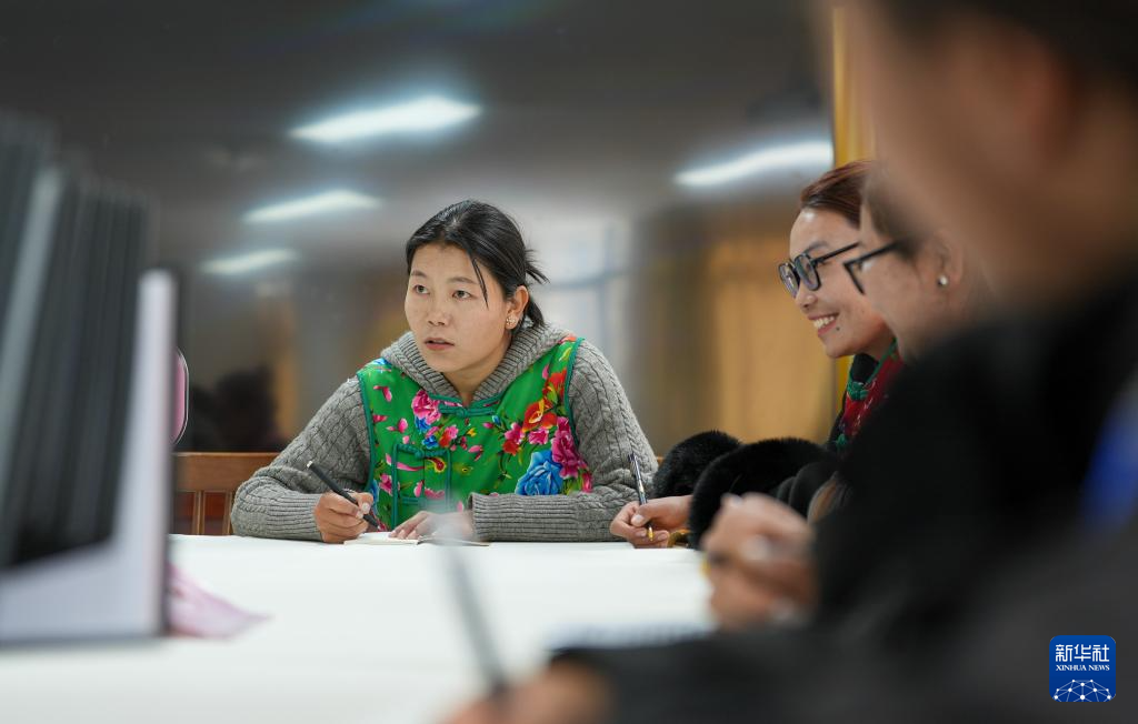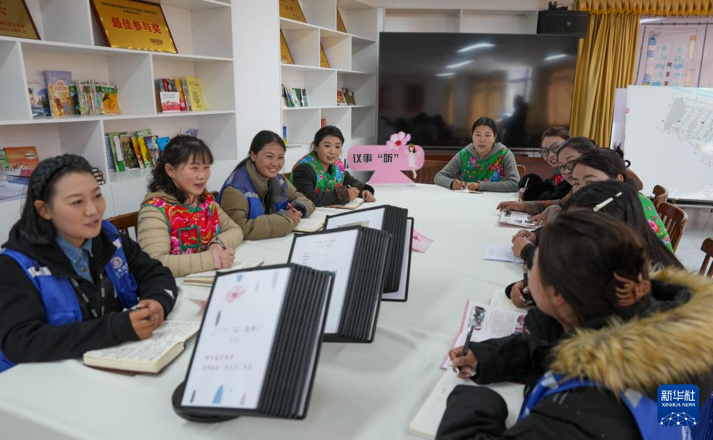 “花大姐”在商量解決社區群眾難事(3月6日攝)。新華社記者 晉美多吉 攝