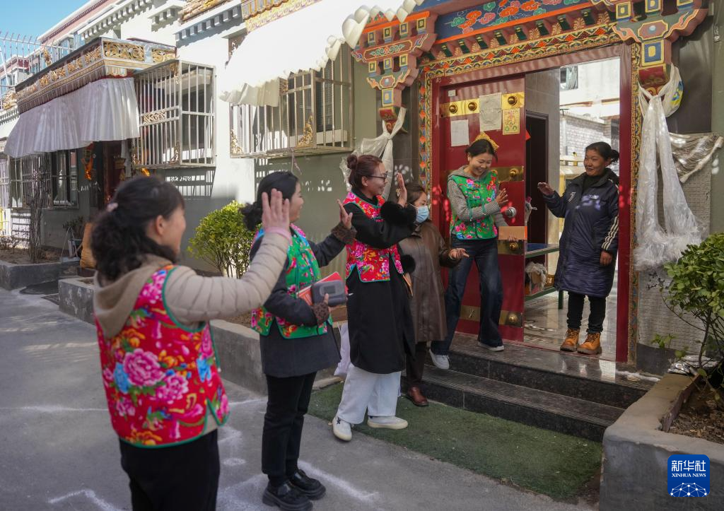 “花大姐”走訪轄區群眾(3月6日攝)。新華社記者 晉美多吉 攝