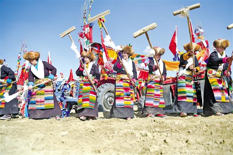圖為扎其鄉藏仲村村民們在舉行春耕儀式。記者 潘多 攝