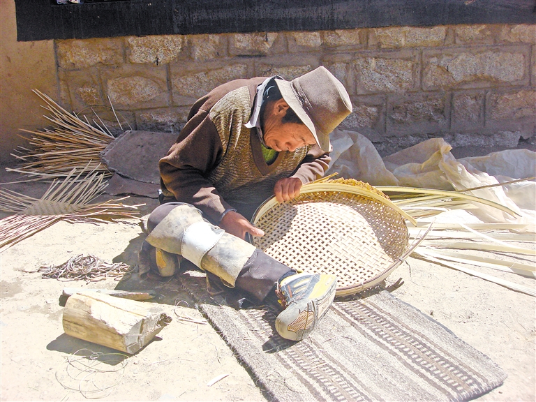 手藝人在制作柳條編織產品。圖/文 記者 黃志武 格桑倫珠