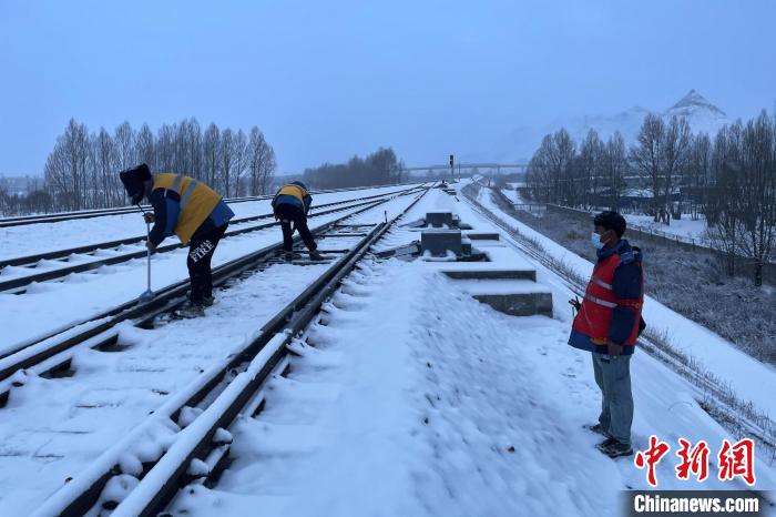 迎戰大雪 西藏日喀則鐵路職工清掃積雪保障拉日鐵路運營