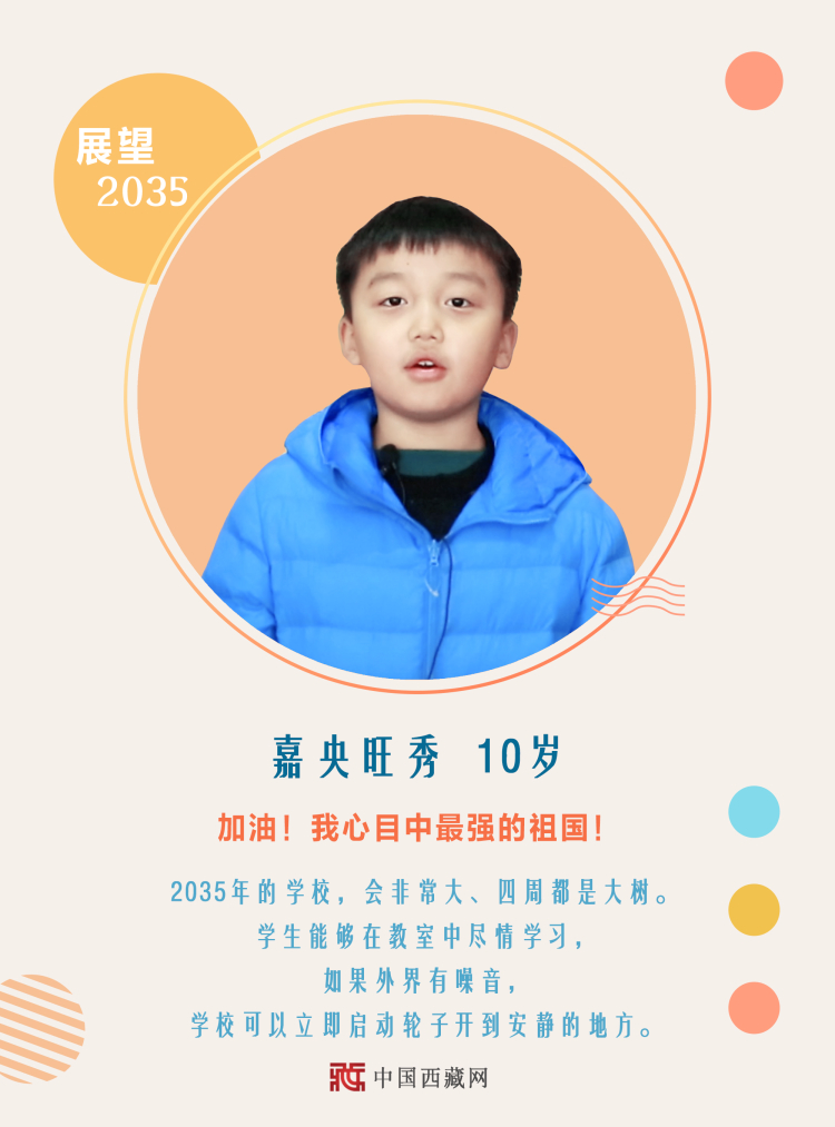 黨的十九屆五中全會(huì)提出,到2035年基本實(shí)現(xiàn)社會(huì)主義現(xiàn)代化。你期待2035年的到來(lái)嗎?在你心中,2035年的中國(guó)會(huì)是什么樣?未來(lái)15年,你有哪些大規(guī)劃、小目標(biāo)?中國(guó)西藏網(wǎng)策劃推出系列海報(bào),本期帶你走進(jìn)小朋友們關(guān)于教育“未來(lái)力”的展望與暢想。