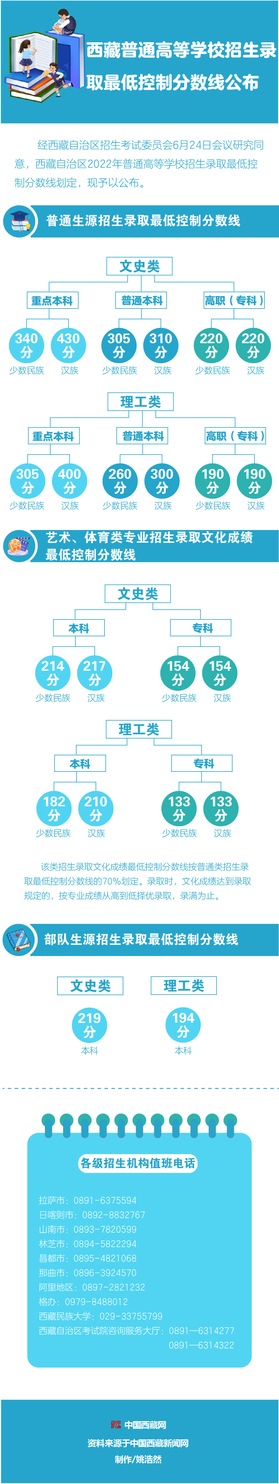 圖解|西藏普通高等學校招生錄取最低控制分數線公布