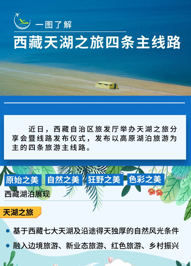 近日,西藏自治區旅發廳舉辦天湖之旅分享會暨線路發布儀式,發布以高原湖泊旅游為主的四條旅游主線路。 [詳細] -