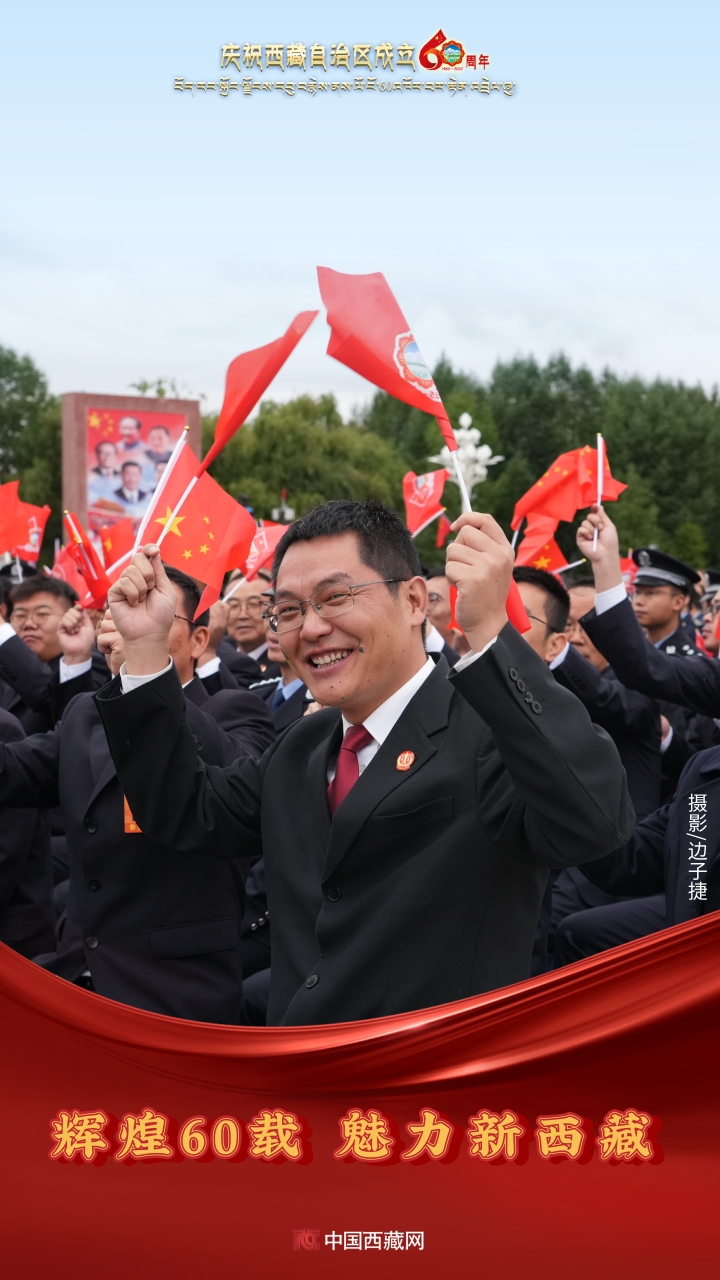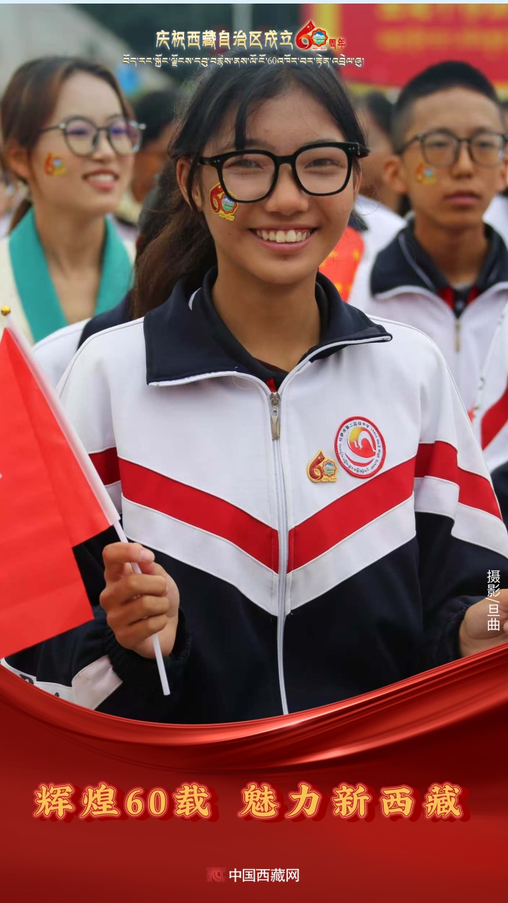 六十年風雨兼程,六十年春華秋實,都在這一刻化作人們真摯的笑容與熱烈的歡呼。讓我們祝福祖國!祝西藏自治區繁榮昌盛,祝西藏各族人民幸福安康!(中國西藏網攝影/邊子捷 旦曲 趙振宇 制作/王茜)