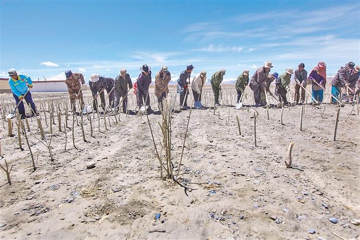 圖為阿里地區多瑪鄉群眾在植樹。記者 格桑吉美 攝