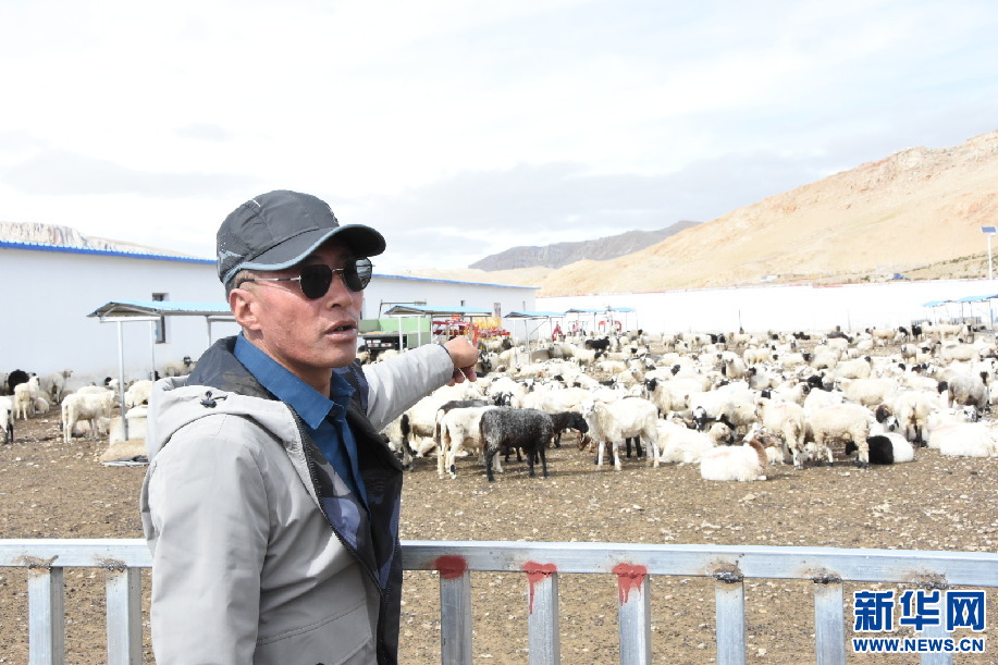 9月14日,古汝村崗巴羊生態(tài)養(yǎng)殖合作社理事長拉巴平措在介紹崗巴羊生態(tài)養(yǎng)殖合作社。新華網(wǎng) 張宸 攝
