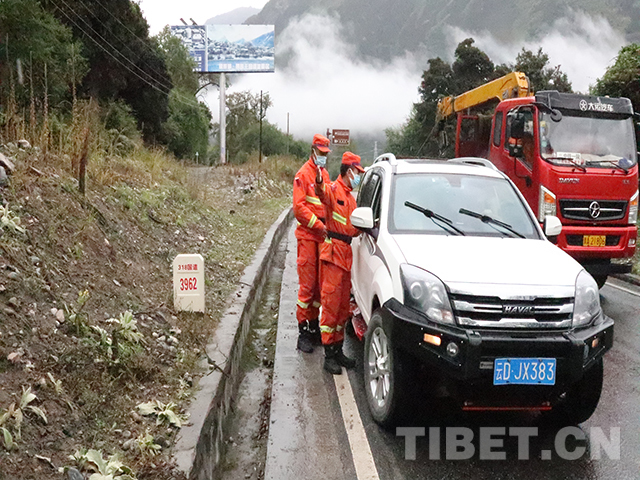 在318國道波密段一處狹窄的施工路段,一輛自駕轎車遭遇爆胎引發堵車。剛搬運完道路滾石的指戰員沒顧上喝一口水,馬不停蹄地前去疏導交通,該中隊駕駛員尊珠加措二話沒說,鉆進了車底,拿起扳手嫻熟地換上備胎,檢修發熱部件。等從車底出來,嶄新的防火服已沾滿油漬和泥痕,車主連忙給他遞上了礦泉水。交談中,指戰員知悉了車主曾是一名在藏服役五年的老兵,一種相見如故的親切感油然而生,在回敬車主標準的軍禮后,大家又匆匆前往周邊村莊開展防火宣傳。