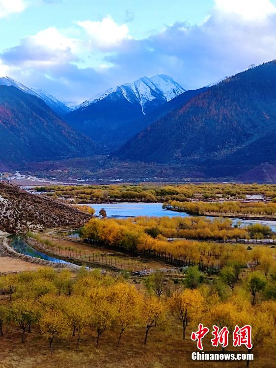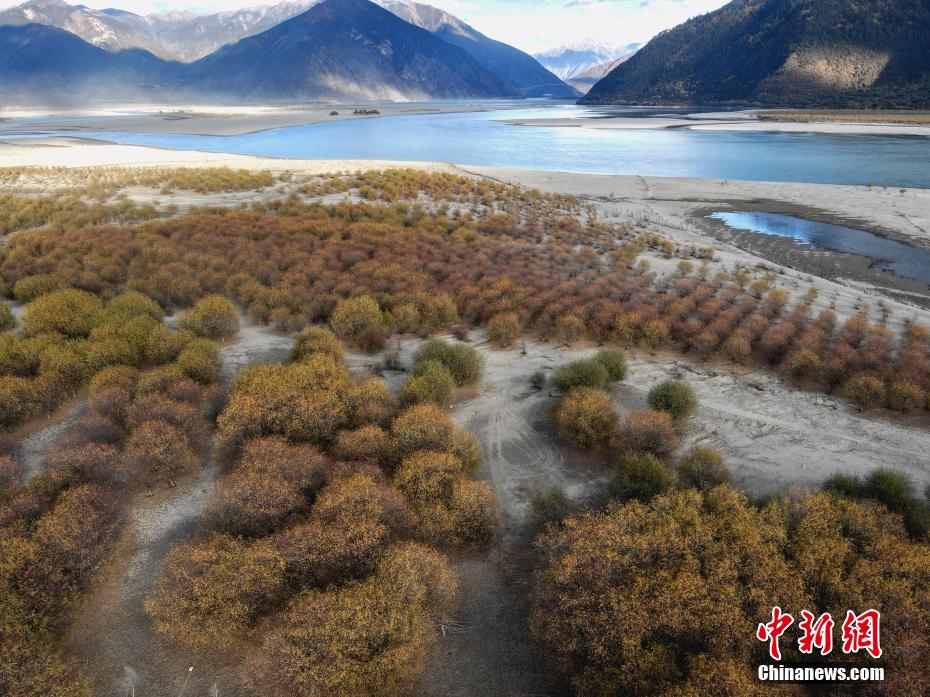 雅魯藏布江位于西藏自治區境內,是世界海拔最高的大河之一。近日,記者途徑雅魯藏布江看到,深秋時節,兩岸的柳樹林變得金黃一片,峽谷間秋色宜人,美如畫卷。值得一提的是,在秋冬兩季的日落時分,傳說中“十人九不遇”的南迦巴瓦峰變得相對容易看到“日落金山”的景象,十分壯觀。江飛波 攝