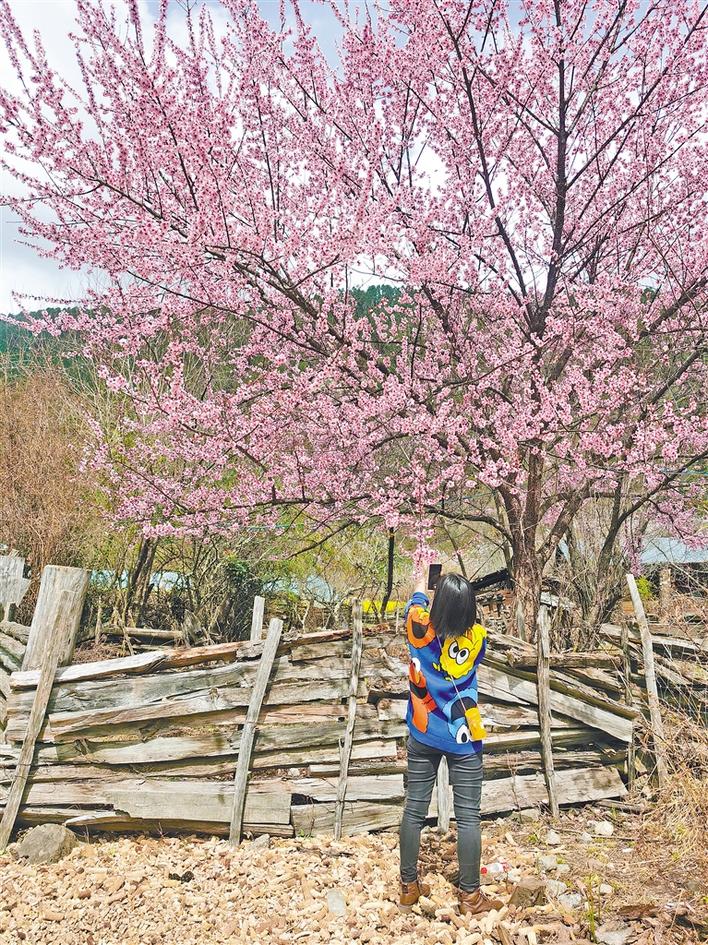 游客在林芝市波密縣易貢鄉拍攝桃花。王珊 張猛 攝