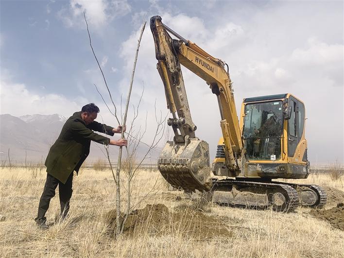 死了那么多樹,為什么還在堅持?“那幾年,在這里隨手捧起一把黃土,還會沙化。我必須堅持下來。”索朗羅布說。2015年春天,索朗羅布再次貸款40余萬元購買了一臺挖掘機,準備修建水渠和挖坑。同年3月,索朗羅布又一次獨自種樹苗,母親卓瑪央金心疼壞了,于是帶著村里姐妹們前來幫忙。不僅如此,她們還帶來了防止草原鼠啃食樹根的土方法,用塑料瓶圍著樹根包一圈,既能防止草原鼠搞破壞,還能節省成本。