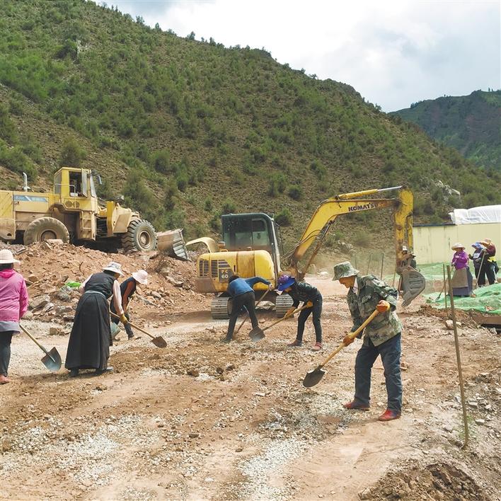 圖為農牧民群眾積極參與道路工程建設。(圖片由昌都市卡若區脫貧攻堅指揮部提供)