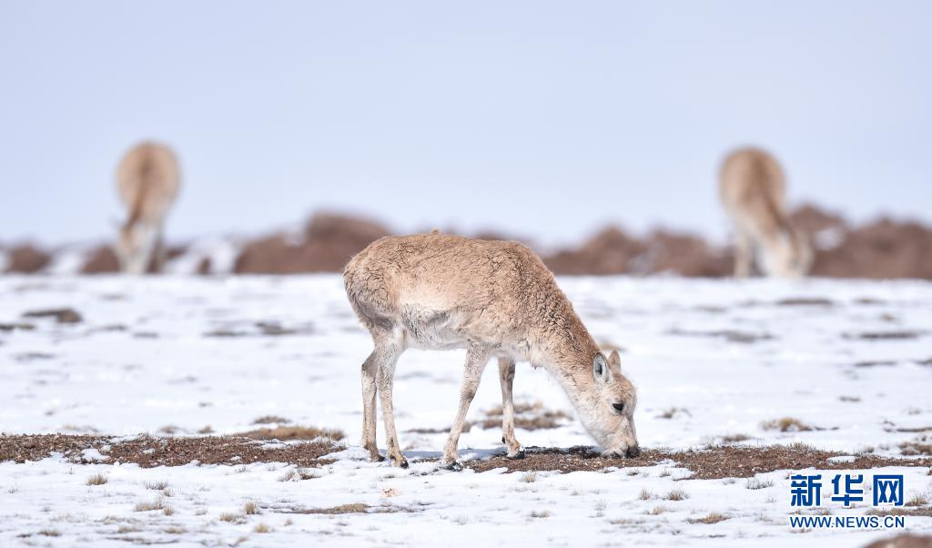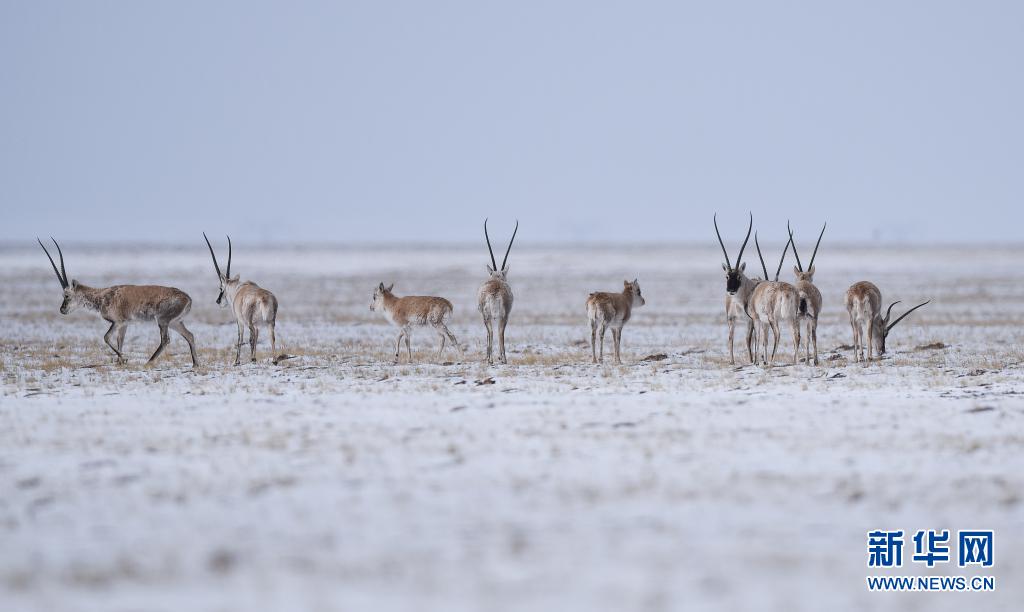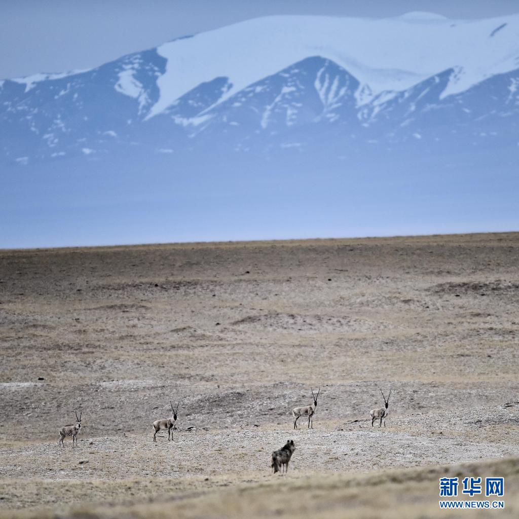 4月20日,藏羚羊在三江源可可西里地區活動。新華社記者 吳剛 攝